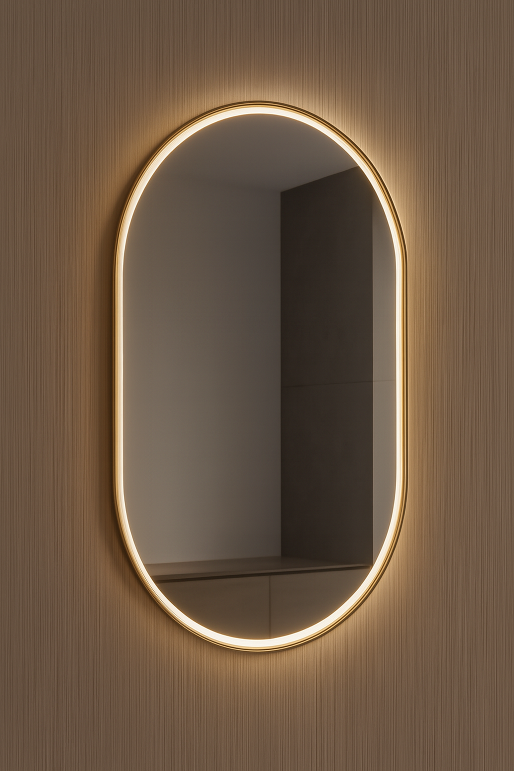 Model 24103 is a sleek, frameless oval mirror with integrated LED lighting around its edge. Designed for modern interiors, it combines minimalist aesthetics with functional illumination—ideal for bathrooms, dressing areas, or vanity setups.